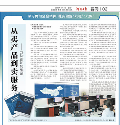 河南日報專題報道《從賣產(chǎn)品到賣服務(wù)—方快鍋爐轉(zhuǎn)型記》
